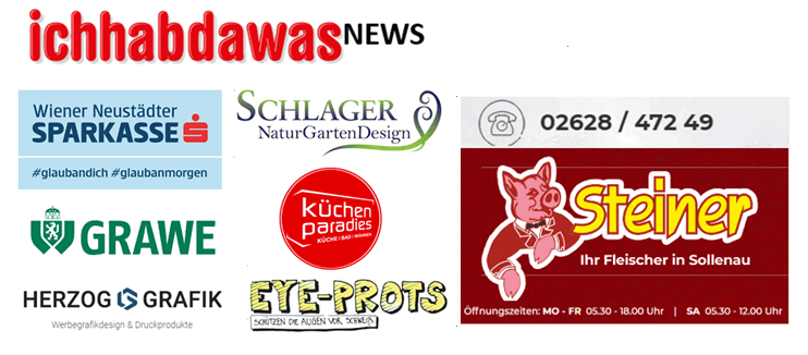 Ein Auszug der Spender der SOLRunners: Bruno Beer, Schroll Seifen, Gasthaus am Kirchfeld, Time4Wine – Michael Gaitzenauer, Tom´s Brillenladen, Mayerhofer Baustoffzentrum, Christian Rieder, 2 Rad Center Papai, Panzenböck – Karosserie, Gramberger – Alles für den Garten, Bäckerei Zirngast und Steiner – Fleischerei